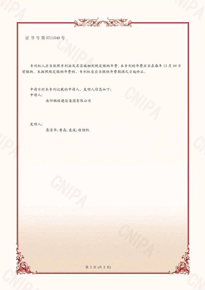 一種墻體抹灰施工設(shè)備-發(fā)明專利證書(shū)(易清華、黃晶、袁成、徐紹凱)_00